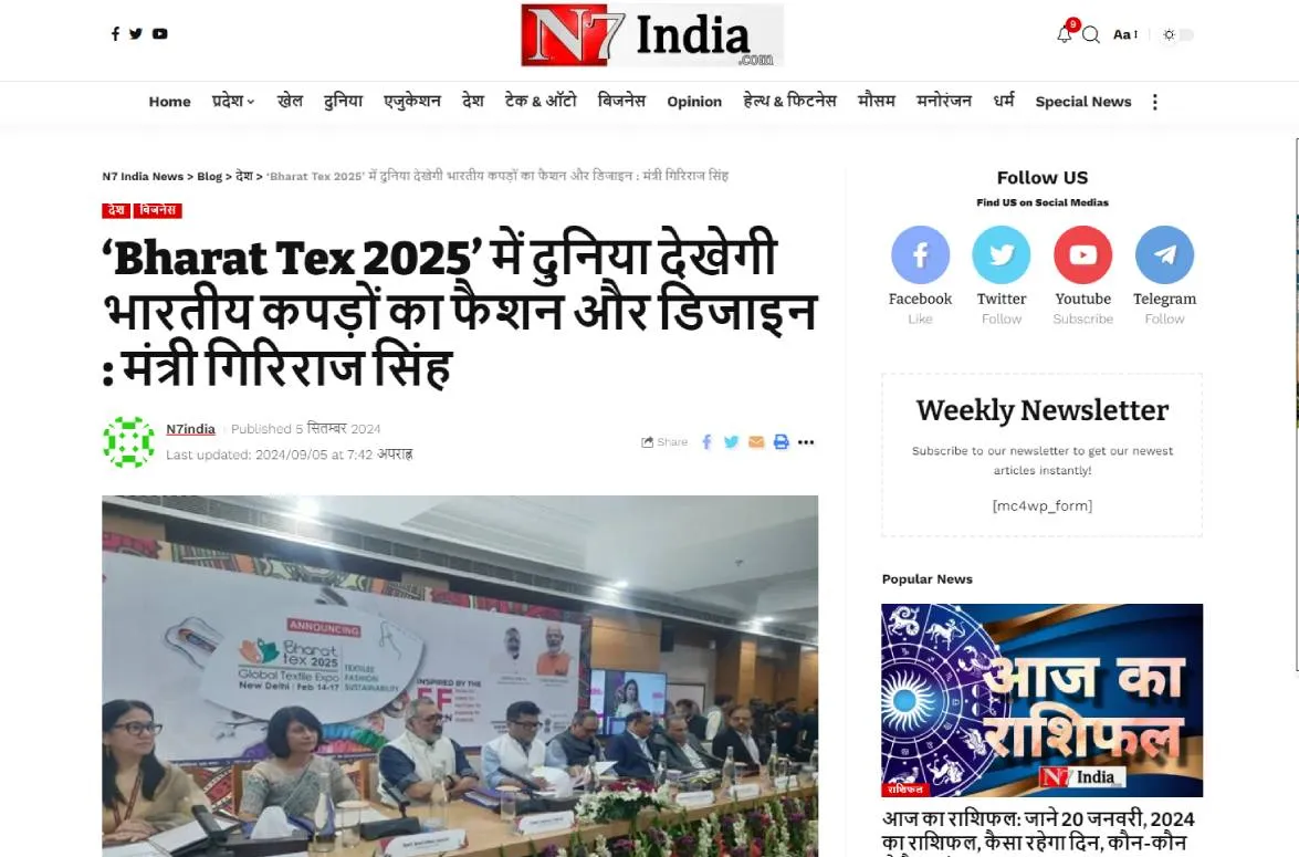‘भारत टेक्स 2025’ में लगेगा कपड़ों का मेला, केंद्रीय मंत्री ने कहा- कपड़ा उद्योग से 3.5 करोड़ नौकरियां पैदा होने की उम्मीद (ddnews.gov.in)