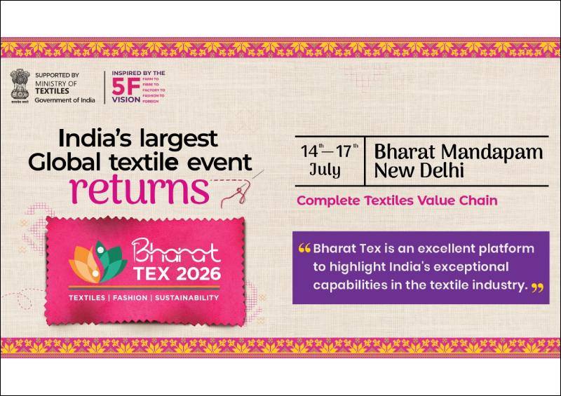 Now India's flagship global textiles and apparel event 'Bharat Tex 2026' will be held from July 14-17, its organisers said on Tuesday. Bharat Tex Trade Federation (BTTF) will host the third edition of Bharat Tex at Bharat Mandapam, New Delhi.